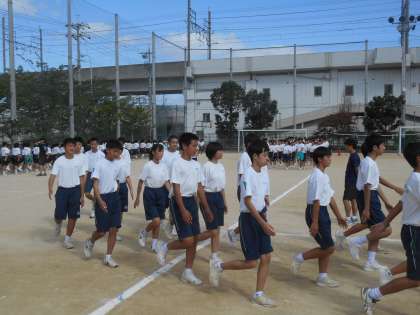 行進練習です。見ていて気持ちがいいです。