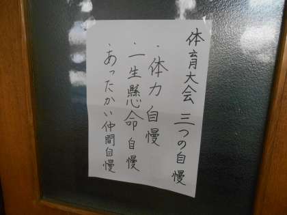 先日の朝礼で話した体育大会の三つの自慢です。本日配布した学校だより「ありがとう」に詳しく書きました。