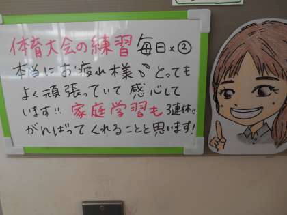 本当におつかれさまです。感動の階段を毎日昇っているところです。でも、体はしっかり休めて学校に来てほしいです。睡眠をしっかり取ってくださいね。