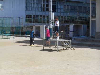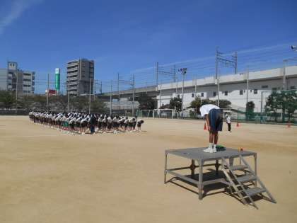 練習の終わりに担当の生徒が講評をしました。自分の伝えたいことをしっかり伝えていました。これもすばらしいことです。自分たちの体育大会という意識が高まります。