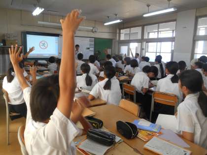 先生の質問にしっかり反応して、挙手をする生徒が多くいました。
