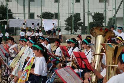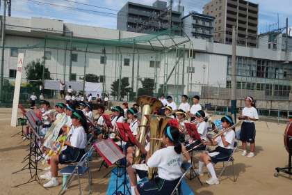開閉会式でしっかり演奏してくれた吹奏楽部の皆さんです。グラウンド中に音楽が響いていましたよ。
