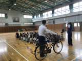 10月18日(火)の3時間目に、4年生を対象とした交通安全教室を開き、自転車の安全な運転の仕方について講習を受けました。