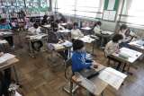 3年2組の様子です。21世紀になり、計算に電卓やパソコンを使うことが当たり前になっていますが、算盤は昔の人の知恵と工夫が詰まった素晴らしい計算道具です。