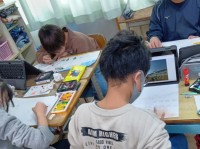 4年の図工の学習、絵の具をつかった色の塗り方を工夫しています。12月には校内図...