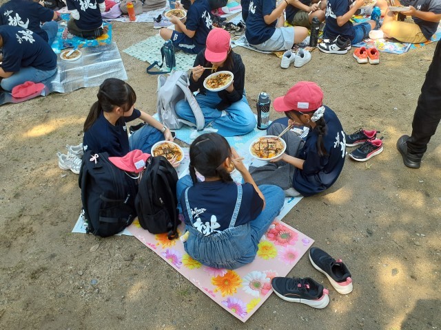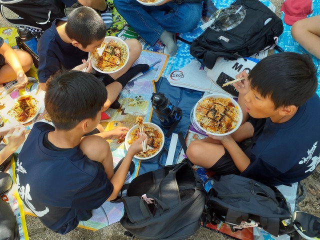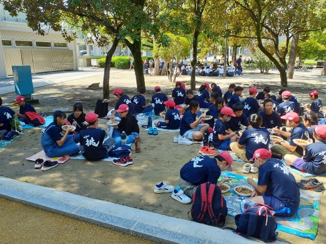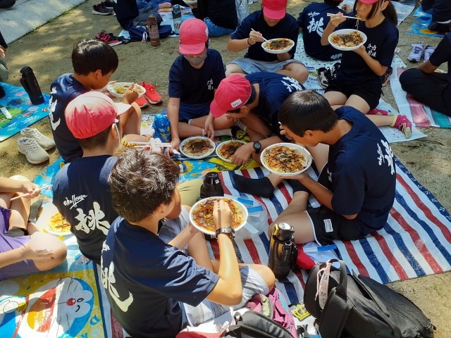 昼食は「広島焼」です。朝が早くお腹がすいていたようでとても美味しそうです。