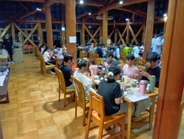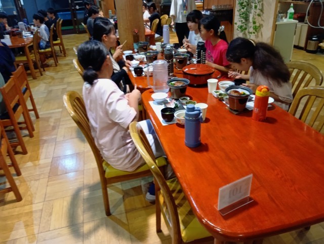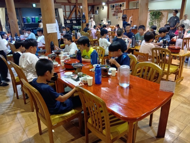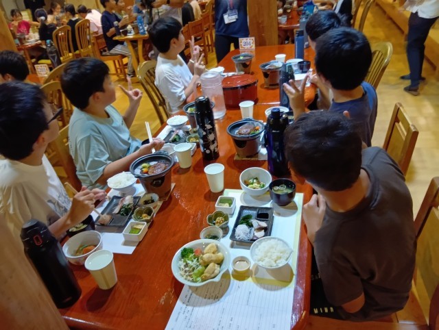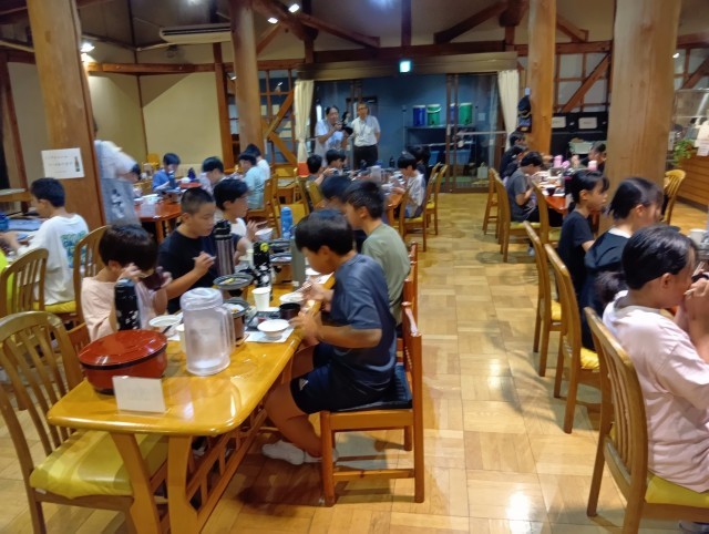 夕食です。今日1日よく動いたので、みんなしっかりと食べています。