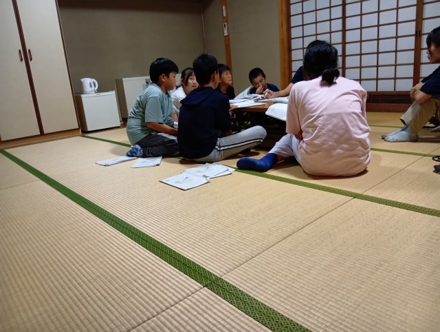 室長会議を行い、今日1日の振り返りをしました。このあと部屋に戻り、今日の反省と明日の確認をして、消灯、そして就寝。1日目の終了です。