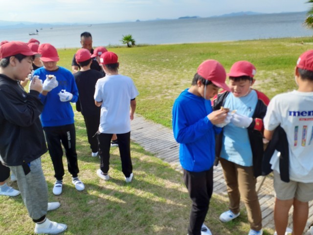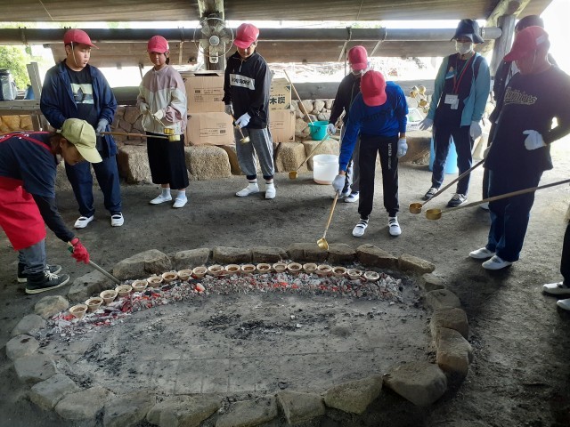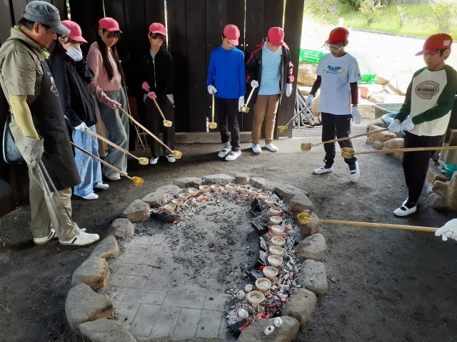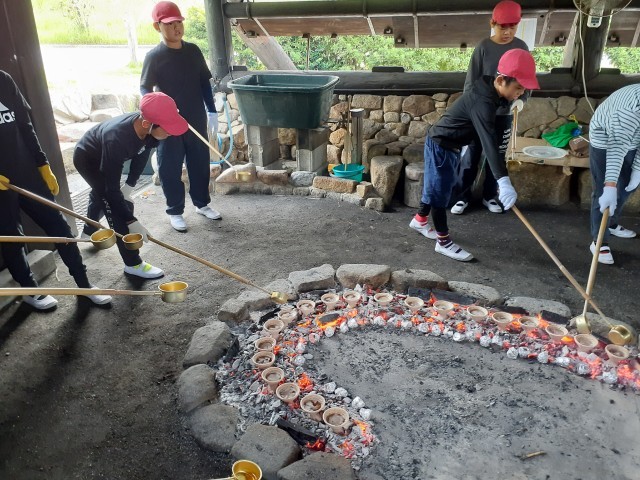 藻塩づくり体験です。できた藻塩を、ホクホクのじゃがいもにつけて頂きました。