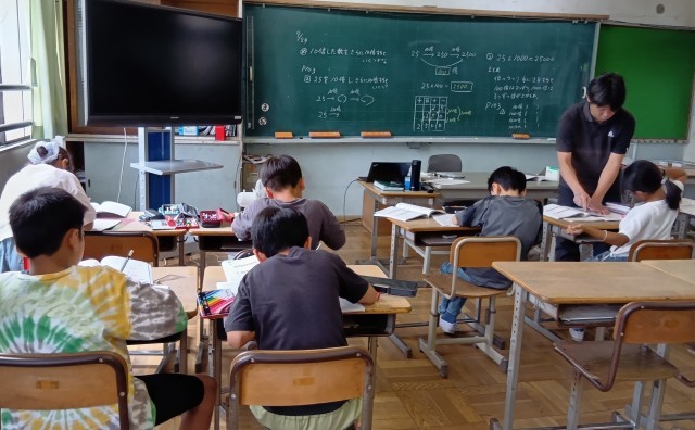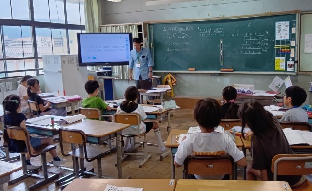 3年生の算数、10倍、100倍、1000倍などの倍の数の計算、クラスを2分割した少人数授業で学びを深めています。