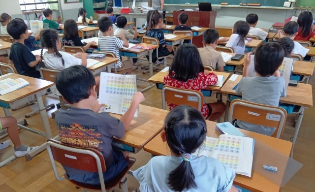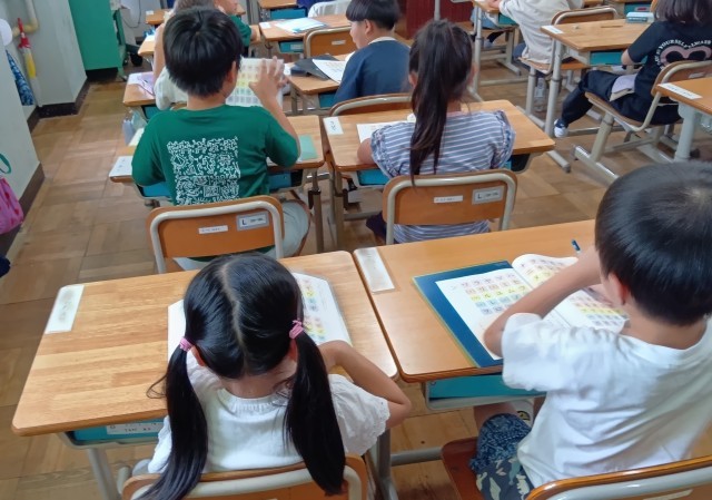 1年生の国語、カタカナの学習です。一生けん命おぼえて、練習しています。