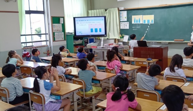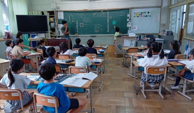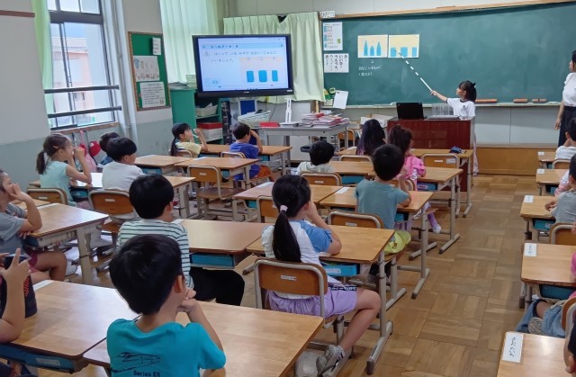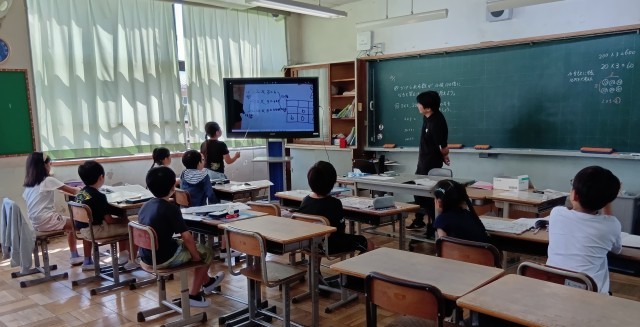 1年生、2年生、3年生の算数の学習のようすです。自分の考えをみんなに説明することで、自分の考えがより深まります。