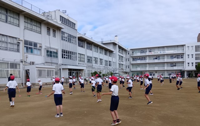 体力づくりの取組み「朝なわとび」、今朝は1年生・4年生・5年生が取り組んでいます。10月もなかばとなりずいぶんと秋らしく、運動にも適した気候になってきました。