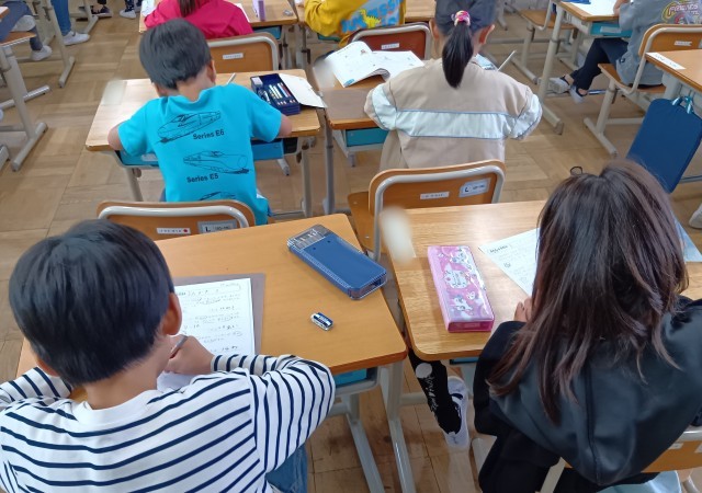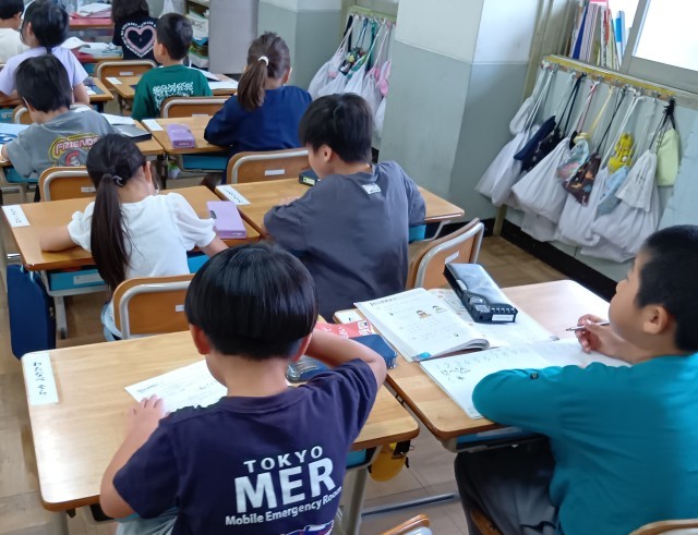 1年生の算数の学習、「ぶんしょうもんだい」に取り組んでいます。
