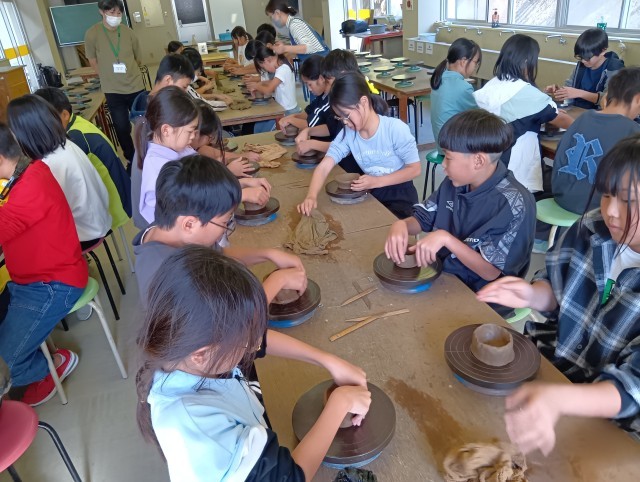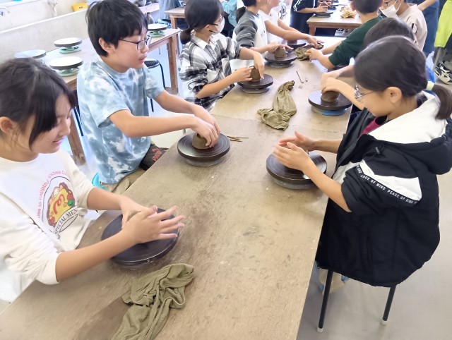 窯元での陶芸体験です。少しずつ器の形ができてきました。