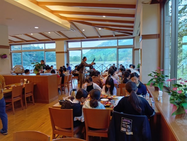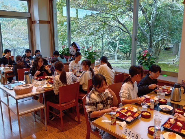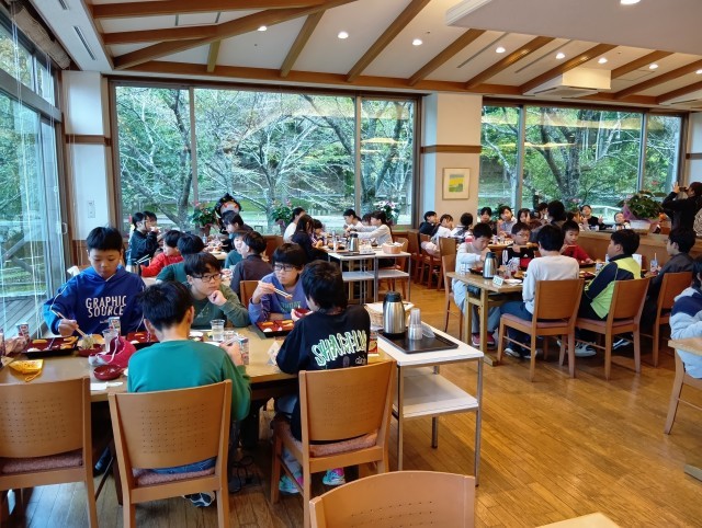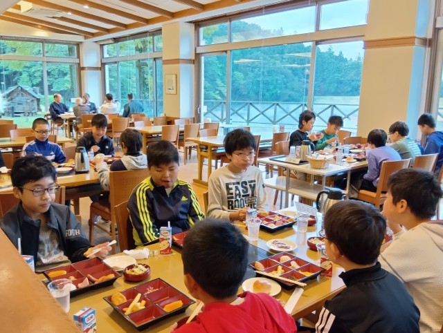朝食です。体操、散歩のあと、みんなしっかりと食べています。