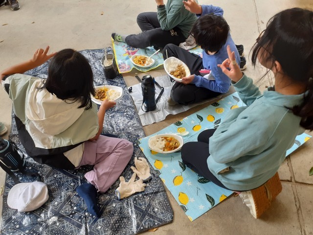 とてもおいしいカレーができました。後片付けもしっかりとがんばっています。