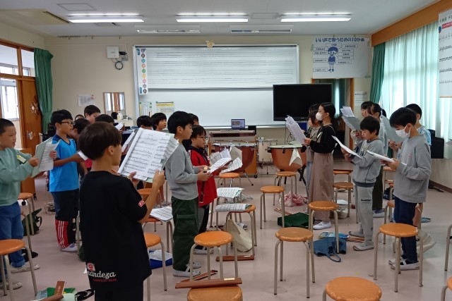 11月に行う校内音楽会にむけて、合唱の練習に取り組んでいます。パートに分かれて互いの声をしっかりと聴き合いながら重なり合うハーモニーを意識しています。