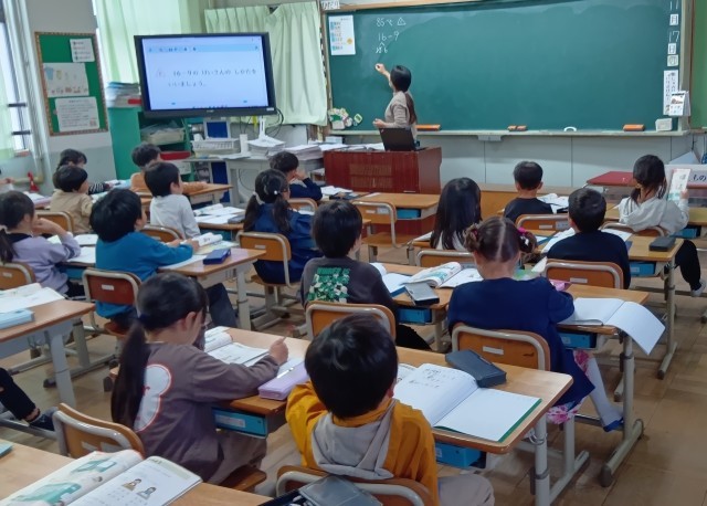 1年生の算数、ひき算の計算の答えを求めるだけでなく、どのように計算をして求めたのか、計算の過程を説明できるように学習しています。