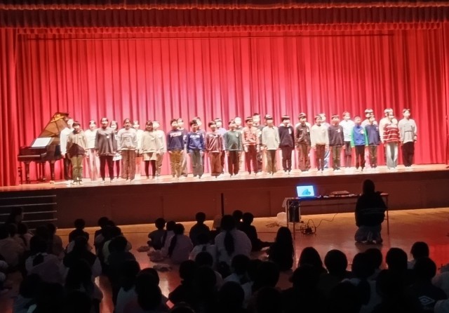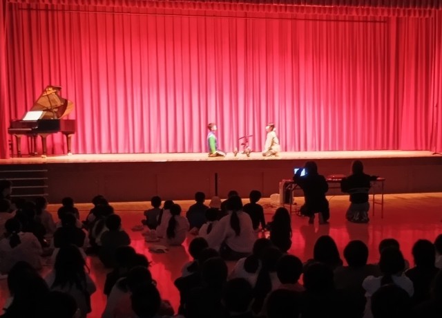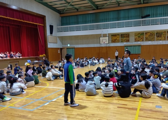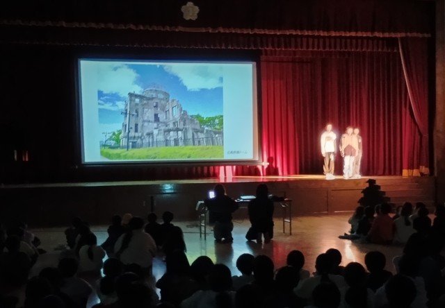 6年生が広島への修学旅行をはじめ平和学習をとおして学んできたことを、劇やメッセージなどを通じて、1年生から5年生に伝える「平和学習報告会」を行いました。報告、発表を聴いた後には各学年より感想を伝えました。