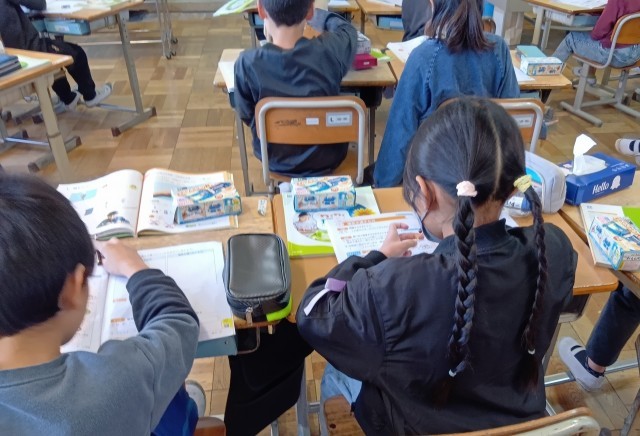 3年生の理科の学習、電気を通すものと通さないものついて予想をしています。このあと実験をとおして確かめていきます。