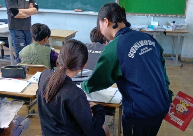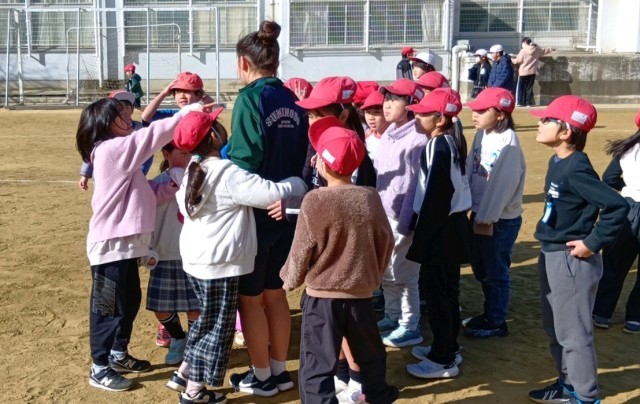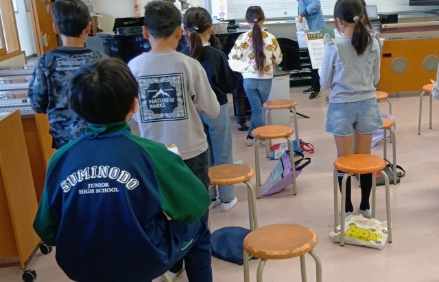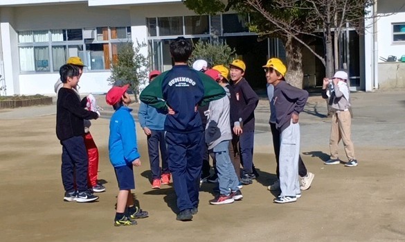 住道中学校の生徒5名が3日間の職場体験学習に来ています。児童の学習の支援をしたり、休み時間に一緒に遊んだりする中で、学校という職場について学んでいます。