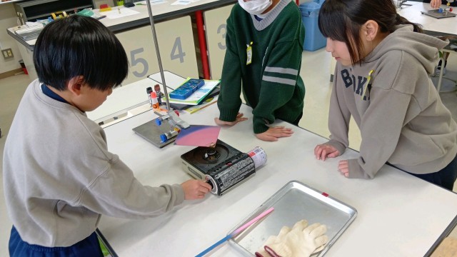 4年生の理科「もののあたたまり方」の単元、金属がどのようにあたたまるのかについて実験をとおして学習しています。