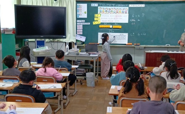 1年生の算数、さんすうブロックをかぞえることから、図にあらわして考える学習です。