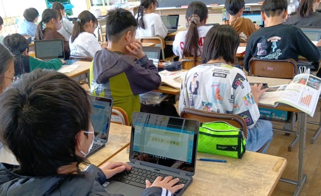 5年生の社会科の学習、自然災害を防ぐための対策などについて、調べたことをまとめる活動です。