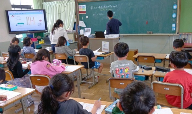 3年生の算数の学習です。2年生で学習した九九をつかった計算の仕方について学んでいます。