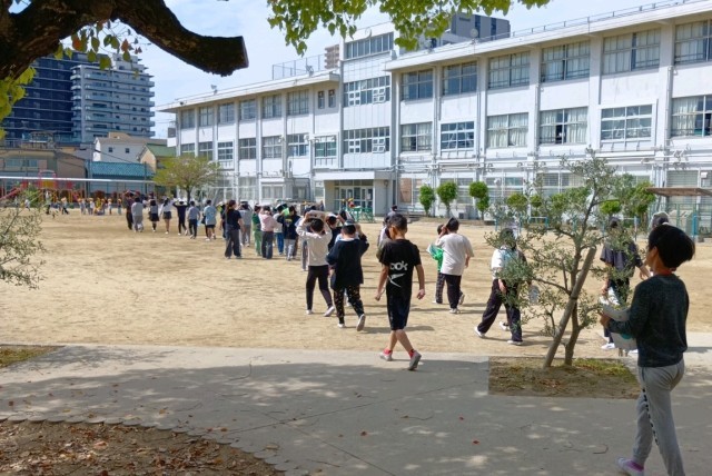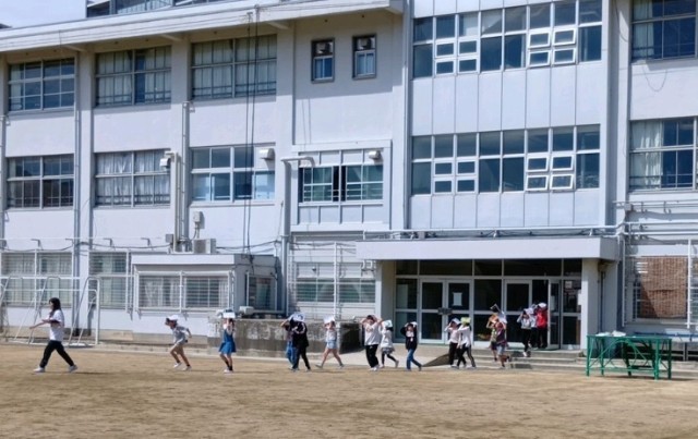 新年度になって教室の場所も変わり、新たな避難経路を確認する目的も含めて地震避難訓練を実施しました。「お」…押さない、「は」…走らない、「し」…しゃべらない、「も」…戻らない、「て」…低学年優先、の合言葉を意識しながら、災害時に備えた避難の訓練を行いました。
