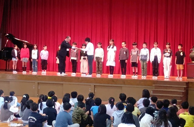 朝の児童集会の中で、前期児童会役員・代表委員の認証式を行いました。認証状を受け取った4年生から6年生の18名を中心に児童会活動を進め、よりよい住道北小学校を自分たちで創っていくためにはどうすればよいか、みんなで考えていきます。
