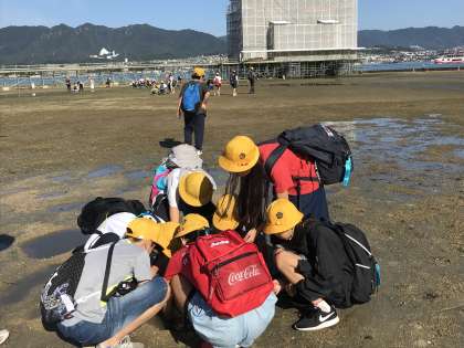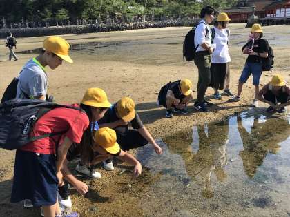 干潮時にあたり、鳥居の近くまで歩くことができ、海の生き物たちとも仲良くすることができました。