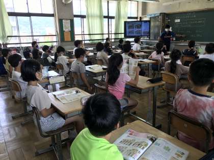 6年2組は、授業の終わりに差し掛かり、各自が頑張ったテストを返してもらっていました。直ちに間違い直しに取り掛かる姿勢は、着実に身に着いていますね。