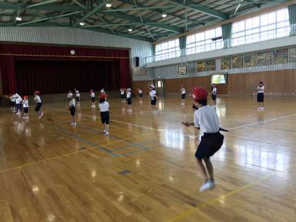 1年2組は、国語の説明文の授業で、丸(句点)まで読んだら次の人が読む、丸読み(一文読み)が上手になっていました。2年1組は、体育館で短なわとびの個人技の練習をしていました。前の交差とびを練習しているところでした。3年1組は、算数の授業で、本時の課題についての説明を姿勢よく聞いていました。ピンと背筋を伸ばし、とても凛々しいです。