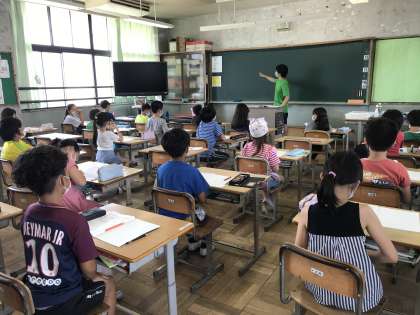 明日からは4連休で、夏休みが短縮された分、楽しみにしていたと思います。しかし、授業にはメリハリをつけて、今日も精一杯、賢くなろう、できるようになろうと、子どもたちは頑張っていました。
