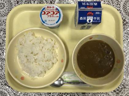 今日の献立は、ごはん・カレーシチュー・ヨーグルト・牛乳でした。