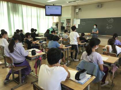 1組は算数、2組は国語の授業です。どちらのクラスも普段通り、落ち着いて学習を進めていました。