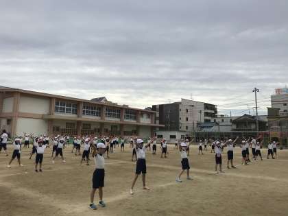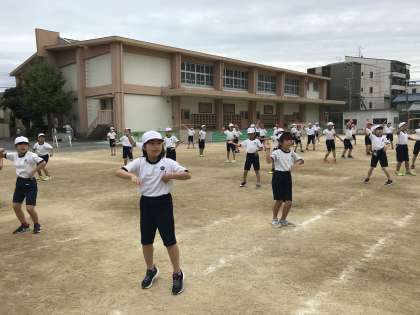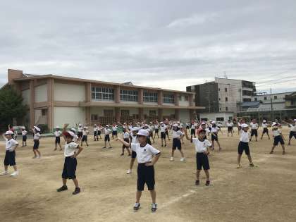特別時間割を組んでの運動会練習は来週から始まりますが、体育の授業時間を合わせ、3・4年生合同でダンスの練習をしていました。