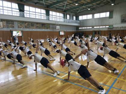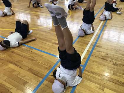 ソーランチームとダンスチームのいずれかを選び、学年の枠を超えての作品づくりに挑みます。再び、ソーランを踊りたいという6年生もおり、5年生に教えてあげることもできます。従前のような組体操は、できなくなりましたが、新しい演技構成を創造する楽しみがあります。