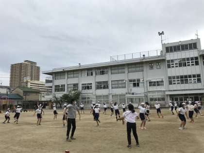 特別時間割を組んでの運動会練習は来週から始まりますが、体育の授業時間を合わせ、5・6年生合同で、マスゲームやダンス等の練習をしていました。