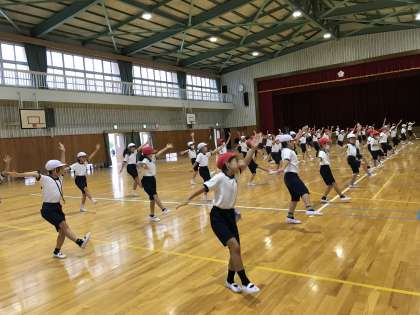 2年生の運動会練習です。特別時間割を組んでの運動会練習は来週から始まりますが、通常の体育の時間を使って、少しずつダンスの練習を取り入れています。