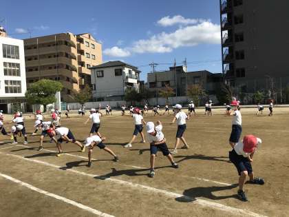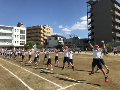 2曲目の「鬼滅の刃」のオープニング曲『紅蓮華』にのって、力強く、切れ味よく動く子どもたちが、とてもかっこいいです。1曲目の『マスカット』との曲想の違いから、動きの変化にも注目です。