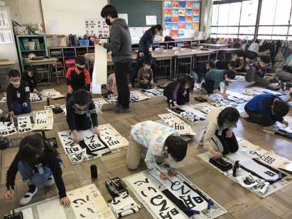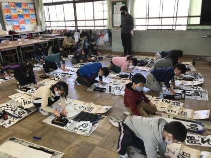 3年生は、1・2組とも教室で「書初め」を行いました。