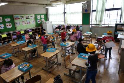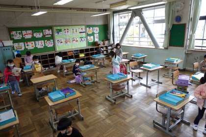 写真は朝の準備をする1年生です。今日も一日頑張りましょうね。