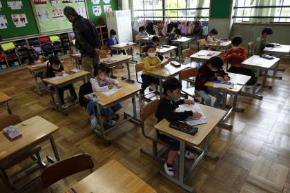 今日はグラウンドで遊べませんので、教室で静かに過ごしています。1年生の様子です。
