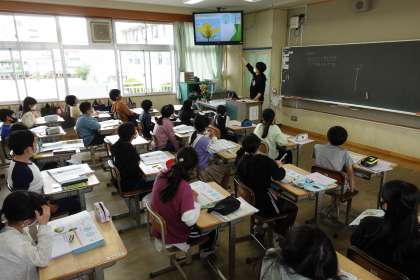 5年1組の様子です。理科の授業です。