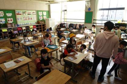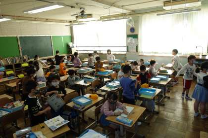 写真は朝の準備をする1年2組と2年生です。(1年1組は更衣中でした。)今日1日頑張りましょう!
