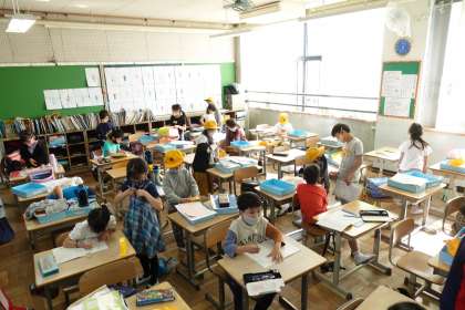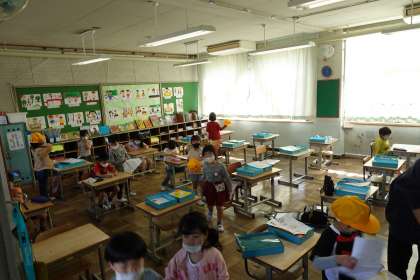写真は朝の準備をする1年1組と(2組は更衣中でした)2年生です。1年生も2年生も、たくさんお話をしてくれます。今日も1日頑張りましょうね。