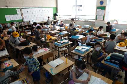 朝の準備をする2年生です。
